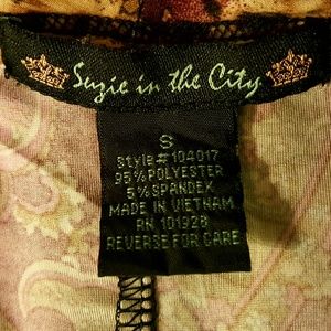 Nice stretchy poly spandex fabric, paisley print stretch waist. Very good condition