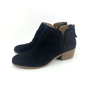Susina Blakely Bootie Black Suede Perforated Back Zip Low Heel Ankle Womens 6