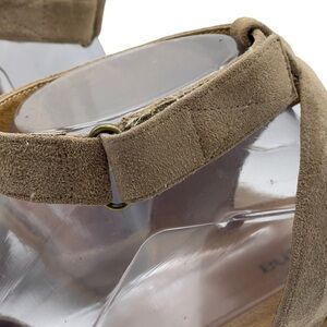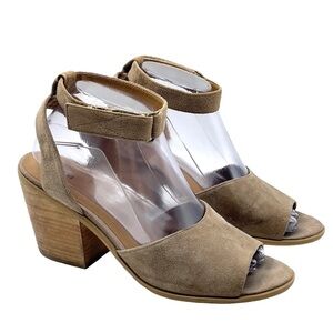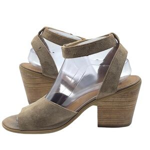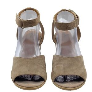 Susina Block Heel Sandals Open Toe Ankle Strap Tan Suede Leather | Size 8.5