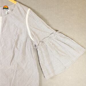 Susina Blouse Top Blue White Boho Striped Round Neck Bell Sleeve Women's Size 1X