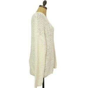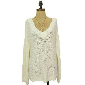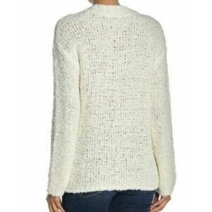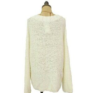 Susina Boucle Sweater Top Size L V-Neck Pullover Fluffy White Snow NWT B12