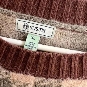Susina Checkered Plaid Knit Brown Pullover Sweater Super Soft Women Size XL NEw