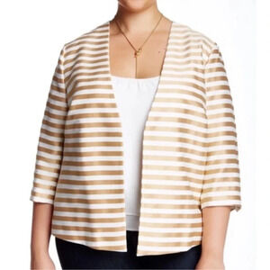 Susina Gold Shore Stripe 3/4 Sleeves Open Front Blazer Jacket Plus Size 2X NWT