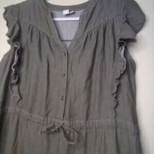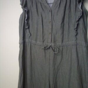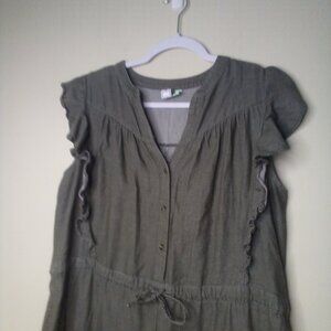Susina Jumper Romper Women M Pants Cropped Short Sleeve Button Green