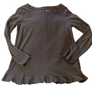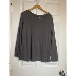 Susina Long Sleeve Ruffle Bottom Charcoal Grey Classic Balletcore Tee Medium