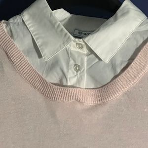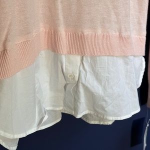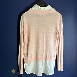 Susina Pink/White Cotton Knit Sweater Removable Collar Small