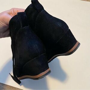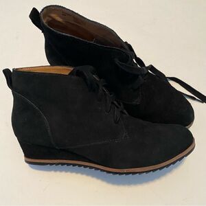 Susina Reid Black Suede Leather Comfort low Wedge Lace-Up Ankle Bootie-9M