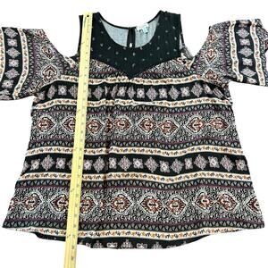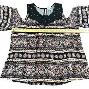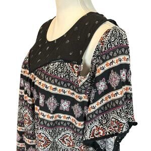Susina Top Women Sze 1X Black White Paisley Cold Shoulder Bohemian Casual Blouse