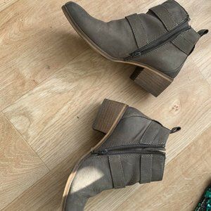 Color is gray with a slight brown tone. Stacked heel is brown. See extensive photos for condition. Boots were worn a few times, but look great!