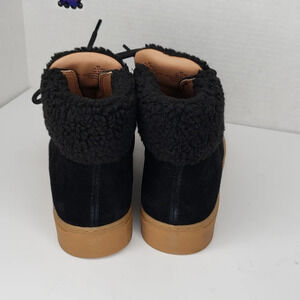 Elevate your winter wardrobe with these stylish Susina boots for women. Crafted with black suede and faux shearling accents, these lace-up boots exude casual comfort and sophistication. The elastic side panels ensure a cozy fit while the durable sole provides traction on slippery surfaces.
