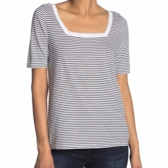 Susina carried at Nordstrom's women's elbow sleeve striped top with square neckline. Black and white. Size small