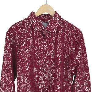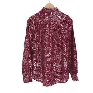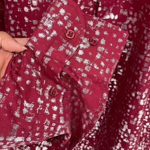 Suslo Couture Mens Spotted Slim Long Sleeve Button-Up Shirt Burgundy Silver Size