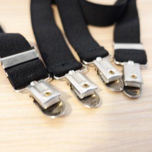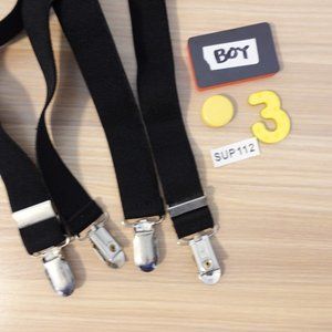 Suspender Boy Black Clip On X Back Adjustable Strap Solid Formal Elastic Stretch