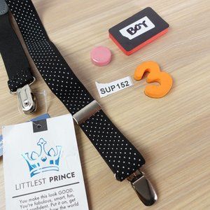 LITTLEST PRINCE Suspender Boy Black Clip On Y Back Polka Dots Adjustable Stretch