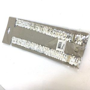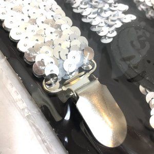 Suspenders Silver Sequin Y Stretch Clip On NWT NOS