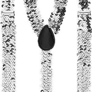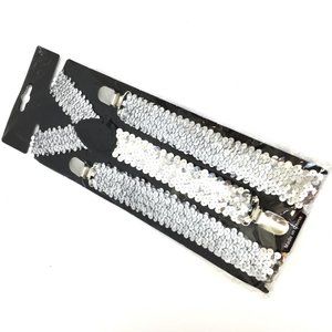 Silver Sequin Y Stretch Suspenders NWT NOS