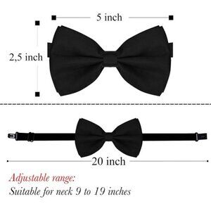 *Adjustable: Our fashionable suspenders and bow tie sets are made with high quality material for extra comfort and long-lasting wear. big and tall, mens ,women , boys, teens can wear it. the size can fit almost everyone who is 13+ years. suspenders size: length is from 24 to 42 inches. width 1 inch. elastic length can be up to 90 inches stretched. bow tie size: 2.5 inch (6cm) wide and 5 inch (12cm) long. bow tie adjustable range suitable for neck 9 to 19 inches.