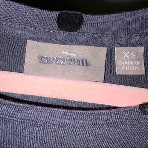 Sussan Dark Gray and Black Polka Dot Tie Front Long Sleeve Blouse, NWOT