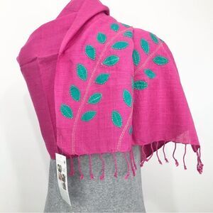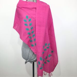 Sustainable Threads Pink 100% Cotton Fair Trade Botanical Appliqué Scarf