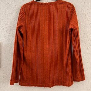 This beautiful terracotta lightweight sweater is a must-have for effortless style. It features a flattering V-neck, soft ribbed knit fabric, and a relaxed fit that makes it comfy and chic at the same time. Easy to dress up or down — pair it with jeans, leggings, shorts, or layer it under a jacket for cooler days. Stretchy, cozy, and versatile.