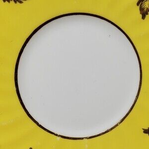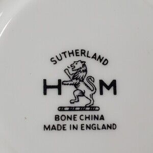 Vintage Sutherland H & M teacup and saucer. Bone china made in England. No chips or cracks. Vibrant yellow background with gold leaves. Some scratches on gold on center of saucer. Stunning teacup!