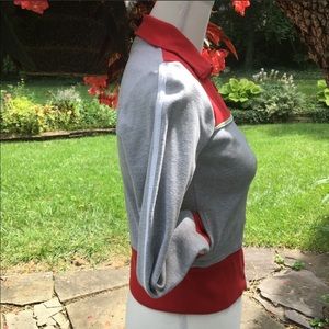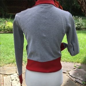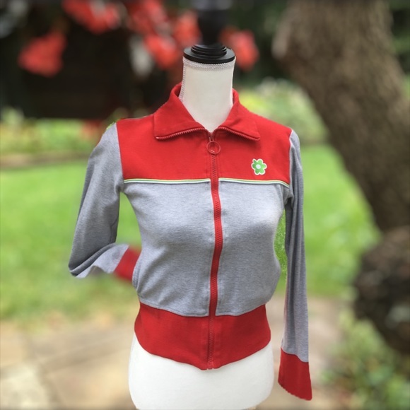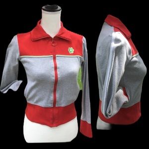 Sutherland Jacket from The Netherlands. Red and Gray with Green and White Piping and Flower. 100% Cotton.