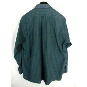 In good used condition. Wrinkle Free. Button collar. Multi-color plaid. Blended Broadcloth. 55% Cotton 45% Polyester. For the best fit please lay one of your best fitting shirts out flat and measure to compare with these measurements.