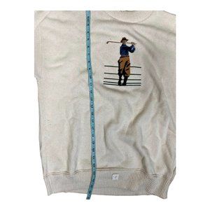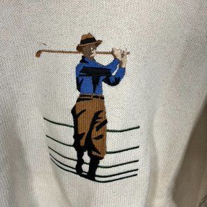 Cool embroidered golfer on this cotton pullover sweater. This is new old-stock with original tags.