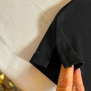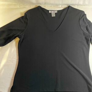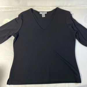Sutton Studio Elegant Black top with Bell sleeve at bottom and small slits on side. Size L petites. 70%Rayon 30% Polyester Made in Korea