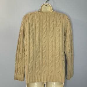 Sutton Studio Cable Knit Sweater Crew Neck Wool Nylon Cream Tan M