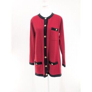 Sutton Studio Cashmere Red Gold Buttons Hong Kong Cardigan Sweater Size Large