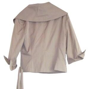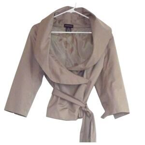 Satin Couture Jacket Sz 12 Tan Taupe Round Lapel Short Wrap Coat Sutton Studio