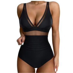 Suuksess women's size small black one piece tummy control swimsuit, push up high waist, nwt