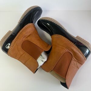 Suyu women’s rain/snow boots in black and brown. Faux leather and rubber. Brand new without tags. There is no shoe size so assuming size 10 with measurements
