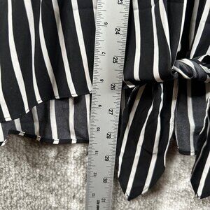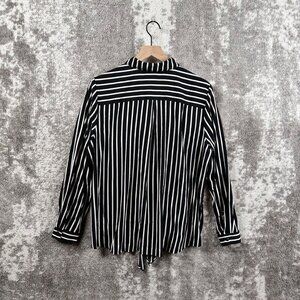 Suzan Graver Shirt 12 Womens Black & White Front Tie Button Beetlejuice Collared