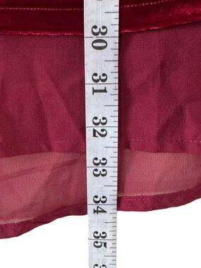Suzanne Betro Velvet Top Blouse. Size: 2X. Color: BURGUNDY. Fabric is soft velvet. Wide scoop neckline. Chiffon liner hangs lower than velvet hem. Two velvet bows on sides of tunic. Perfect for work, Christmas and New Years parties, and holiday get togethers.