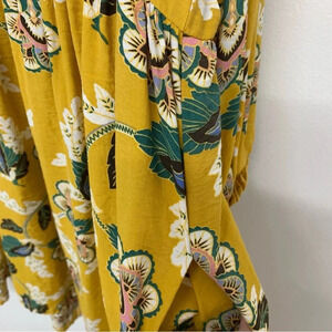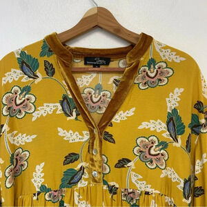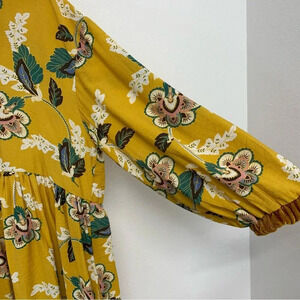 Suzanne Betro Baby Doll Dress Medium Yellow Floral Empire Pockets Boho Fairy