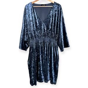 Suzanne Betro Blue Crushed Velvet V Neck Dolman Sleeve Stretchy Dress Women's XL