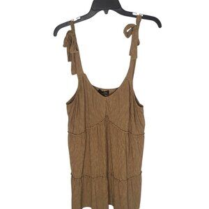 Suzanne Betro Brown Shoulder Tie Tank Top Blouse Cottagecore Babydoll - XL