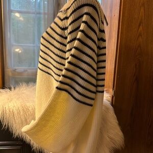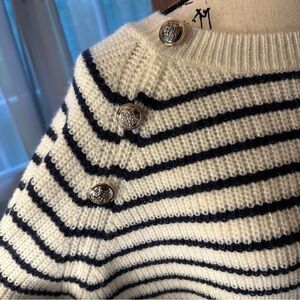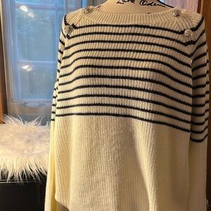 Suzanne Betro Cream Sweater w/Navy Stripes & decorative buttons Super Soft NWT