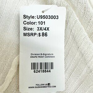 Suzanne Betro Drape Front Cardigan 3X/4X White Lightweight Knit Stretchable NWT