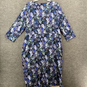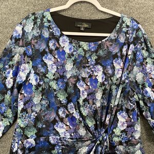 Suzanne Betro Dress Womens 3X Blue Floral Wrap Round Neck Sheath Ladies Cocktail