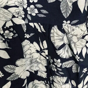 Suzanne Betro Floral V-Neck Flutter 3/4 Sleeve Navy Blue Blouse - S