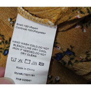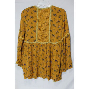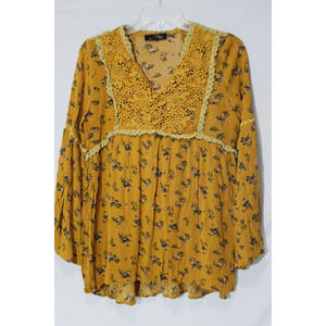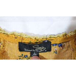 Suzanne Betro Golden Yellow Crinkle Floral Lace Tunic Top Women's L Boho