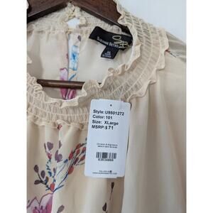 Suzanne Betro Ivory Floral Sheer Smock Neck Blouse Womens Size XL Lightweight New