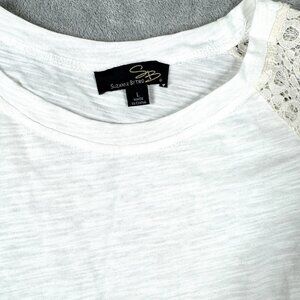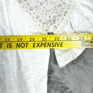 Suzanne Betro women’s blouse, size L. Beautiful ivory top with lace shoulder panels and ruffle bell sleeves. Soft, lightweight fabric with a flowy feminine style. Perfect for casual, work, or dressy occasions. Condition is new without tags. Please see photos for details.