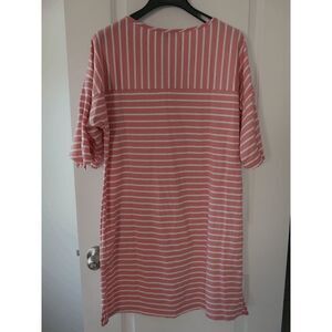 Suzanne Betro Pink & Ivory Stripe Tie-Cuff Yoke Shift Dress M