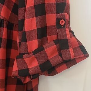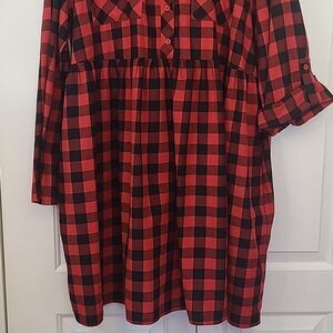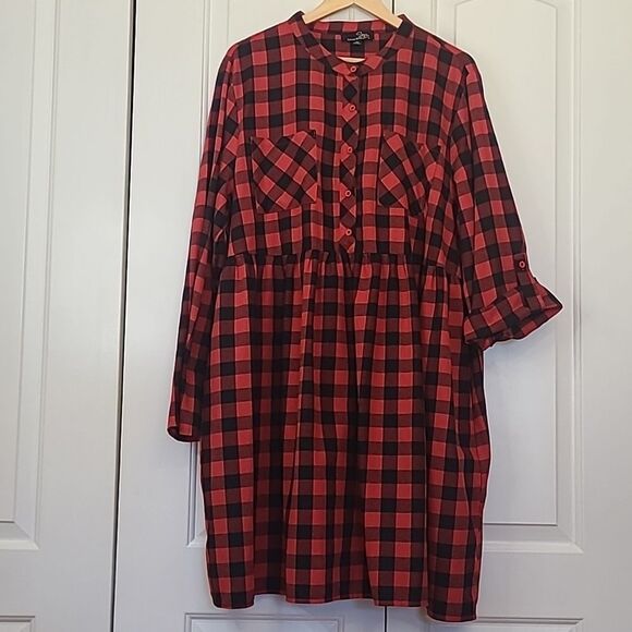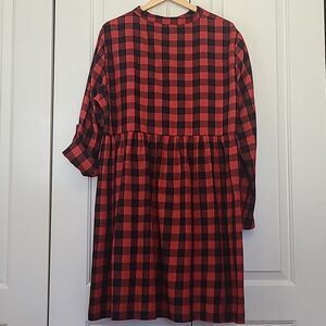 Suzanne Betro Plus Buffalo Plaid Red Bkack Babydoll Dress Long Sleeve Size 2X