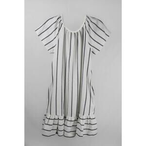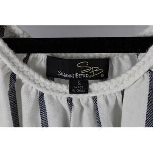 Suzanne Betro Size Small Dress Off-Shoulder Ruffled Striped Blue & White
