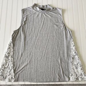 Suzanne Betro Sleeveless Striped Lace Panel Mock Neck Top - Size 2X